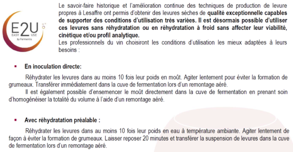 En tant qu’activateur de fermentation malolactique (FML): 25 à 50ml/hl avant FML en fonction du degré d’alcool