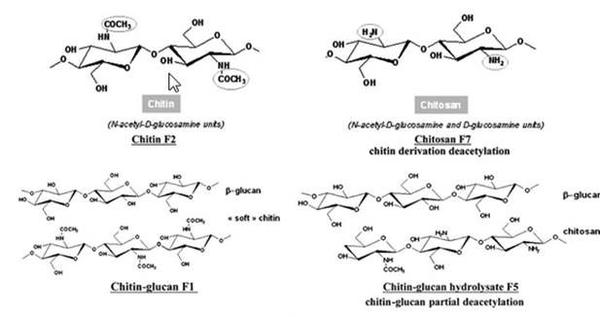 En tant que polymère, le chitosane peut varier selon la longueur de la chaine et donc de son poids moléculaire, ainsi que du degré de désacétylation. Il y a donc différentes formes de chitosane, avec différentes applications, comme par exemple la clarification en flottation et le collage des moûts et des vins.