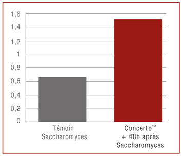 ConcertoTMproduit de l’acide lactique (environ 0,7 g/l) au départ de fermentation alcoolique. Pour cela cette levure utilise une partie des sucres présents dans le moût. La richesse en sucres du moût est ainsi naturellement réduite.