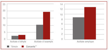 La même souche Saccharomyces a été utilisée dans les deux cas (15 g/hl). ConcertoTM a été ensemencée après éraflage (20 g/hl)