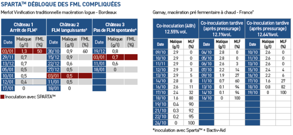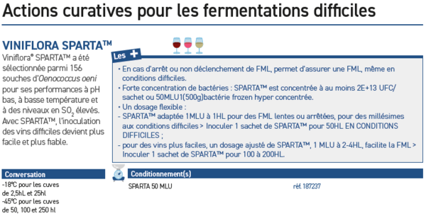 - 2. Pour un vin difficile : inoculer directement Viniflora Sparta avec double dose de Bactiv aid 2.0*